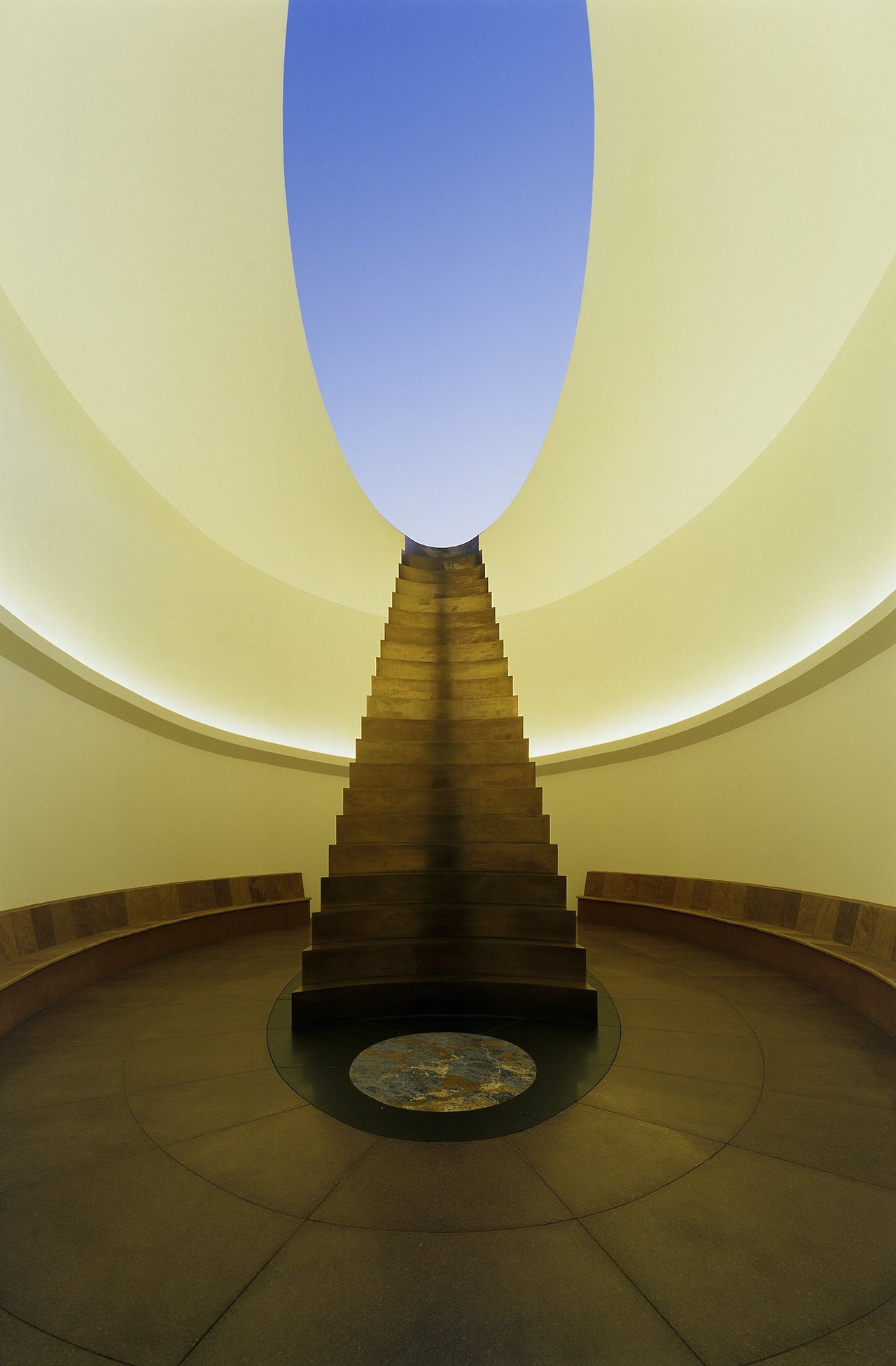〈Skyspace〉 시리즈는 천장에 사각형이나 원형 개구부를 내어 하늘을 프레임처럼 보여주는 설치 작업이다. 시간과 날씨, 빛의 변화에 따라 하늘은 하나의 ‘살아 있는 그림’으로 변모하며, 관람객은 색채와 공간의 관계를 새로운 방식으로 체험하게 된다.