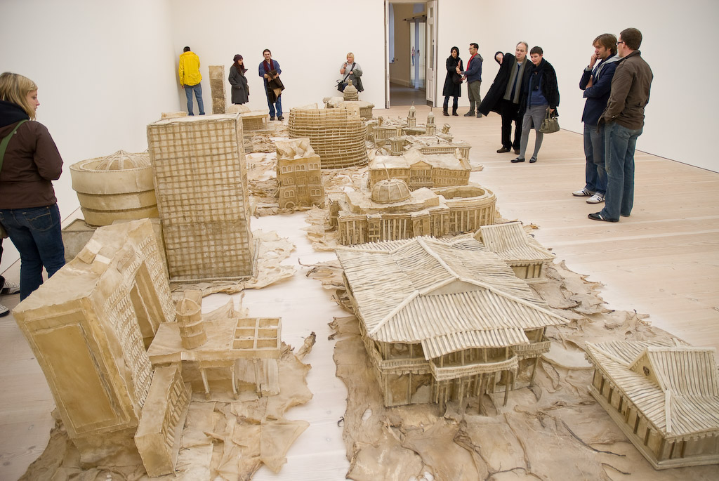 - 건축물 모형들을 개껌(Edible dog chews)으로 제작한 도시 전경 설치작이다. 콜로세움, 구겐하임 등 권위를 상징하는 건축들을 밋밋하고 우스꽝스럽게 재현하며, 권력에 대한 욕망과 소비주의의 부패를 냉소적으로 풍자한다.