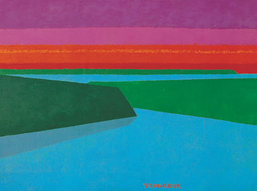 유영국(1916~2002)은 한국 추상미술의 개척자로, 산과 자연의 구조를 기하학적 형태와 강렬한 색면으로 재해석한 작가다. 그의 작품은 삼각형과 직선이 교차하며, 산의 견고함과 자연의 에너지를 추상적으로 표현한다. 화면은 붉은색, 남색, 회색 등의 대비로 구성되며, 자연의 질서와 인간의 정신성을 동시에 탐구한다. “산은 나의 고향이자 마음의 형태”라는 그의 말처럼, 작품은 정서적 고향으로서의 자연을 상징한다.