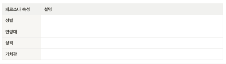 페르소나 테이블은 다양한 속성을 통해 페르소나를 구체적으로 정의한 표다.