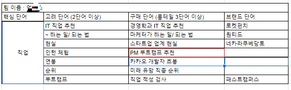 핵심 단어 / 고려단어 / 구매단어 /로열티를 높일 수 있는 브랜드 단어
